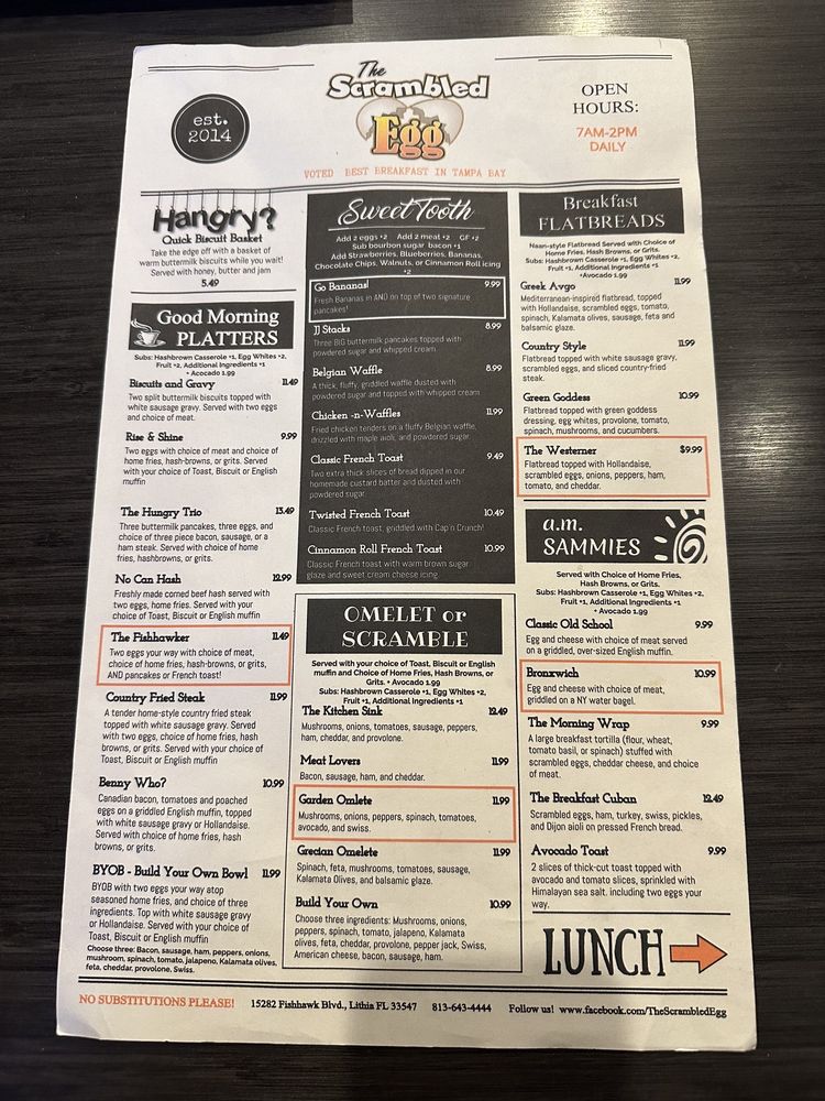 Welcome to The Scrambled Egg, your ultimate breakfast and brunch destination located at 15282 Fishhawk Blvd, Lithia, FL. This American-style eatery offers a delightful array of morning favorites that cater to every palate.